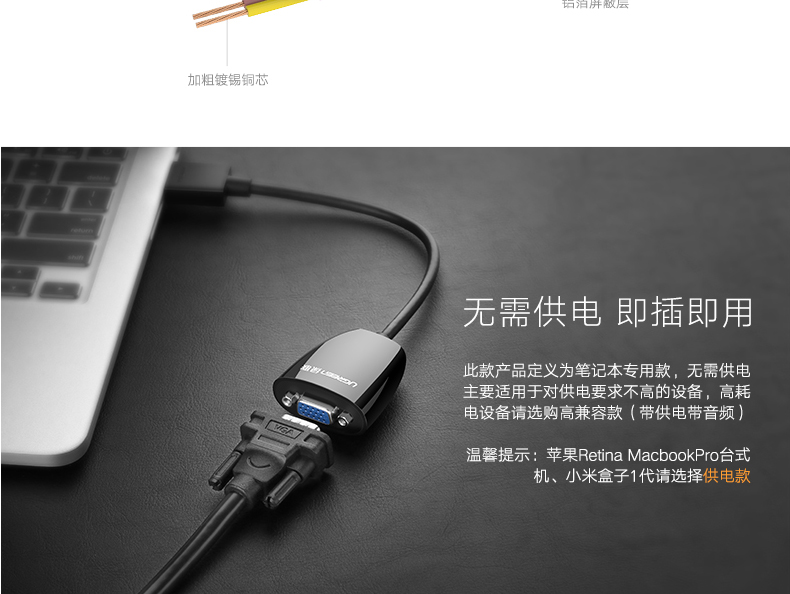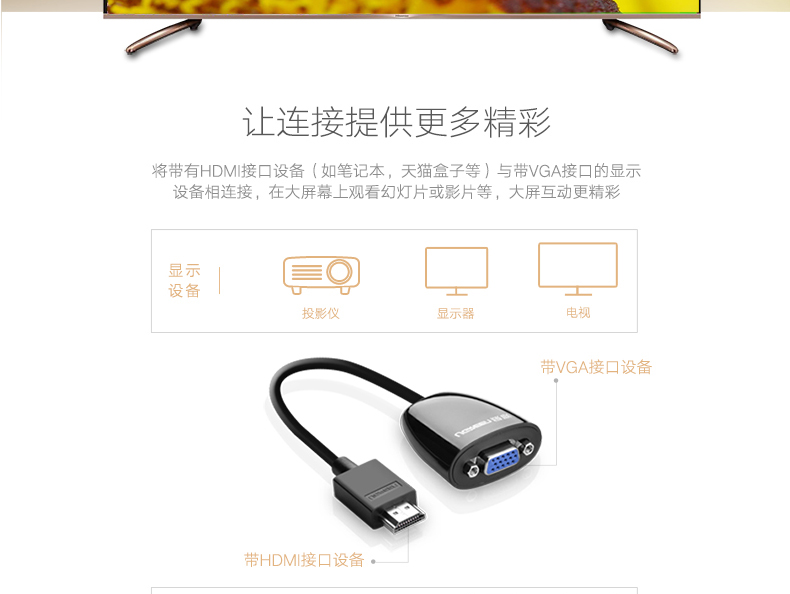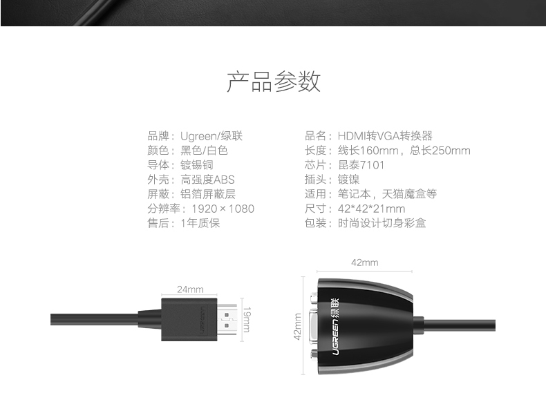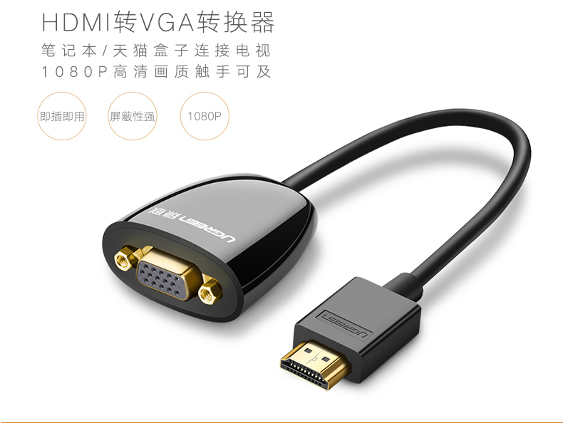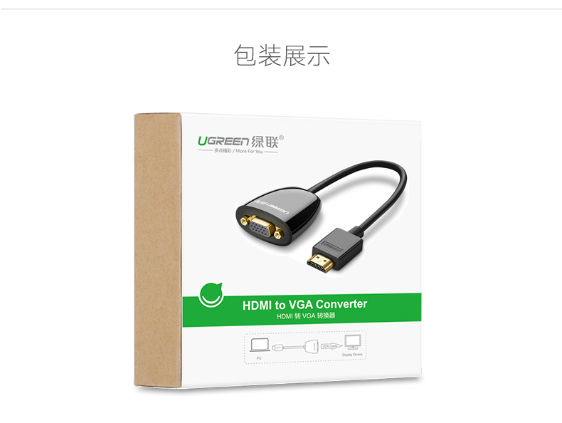 • 商品名称:绿联(UGREEN) 40252 HDMI转VGA线转换器 高清视频转接头 (白色)