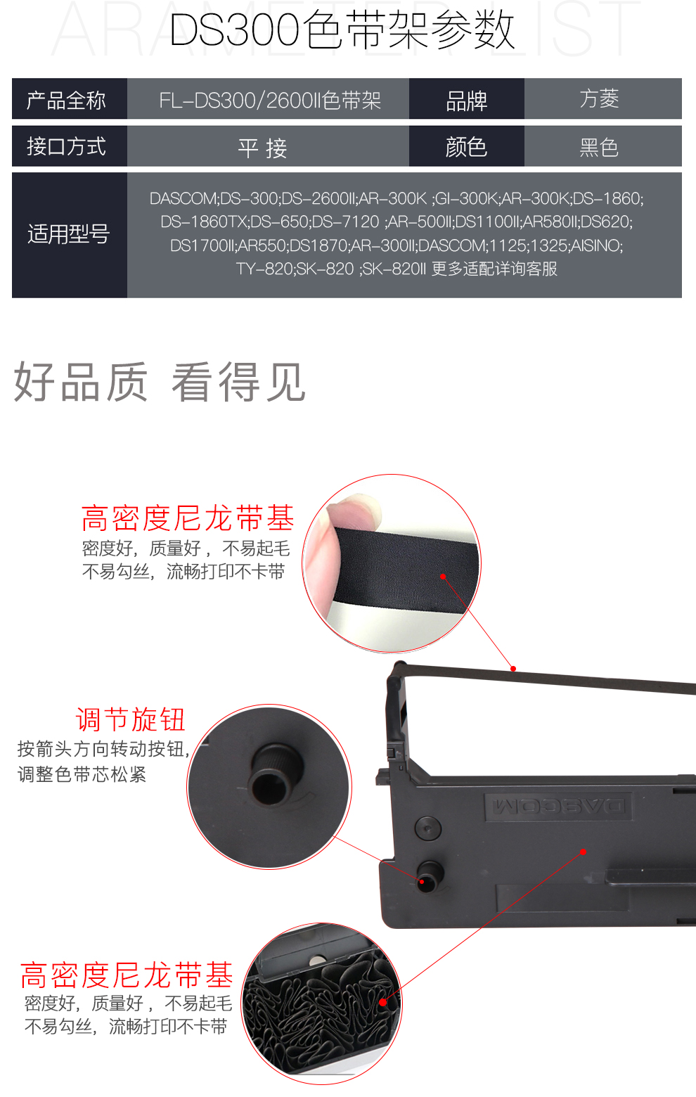 • 商品名称:方菱(FangLing) DS300 色带 适用得实DS2600II DS1860 DS1700II DS1870 1100II AR300 AR550D打印机