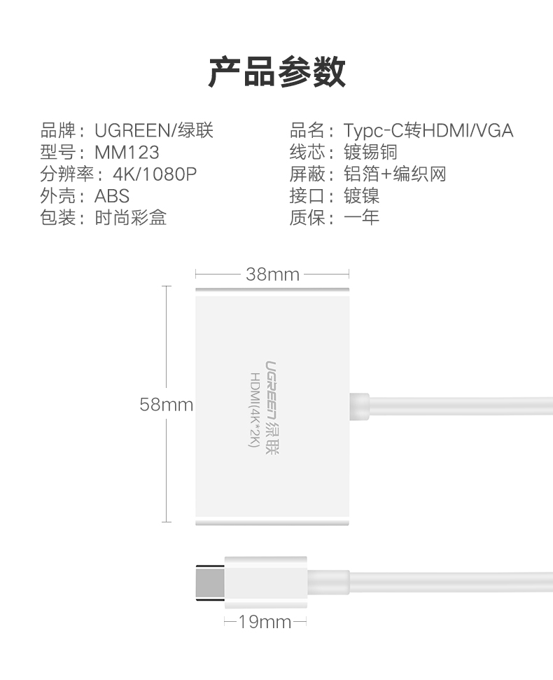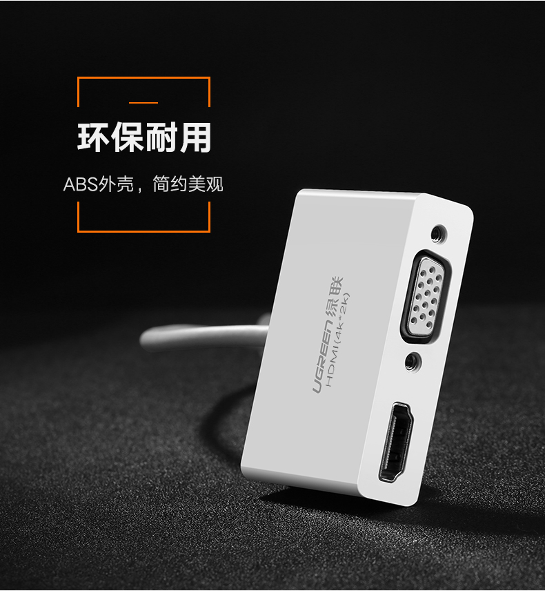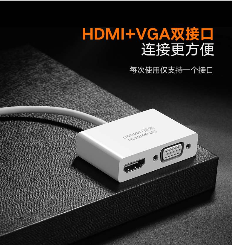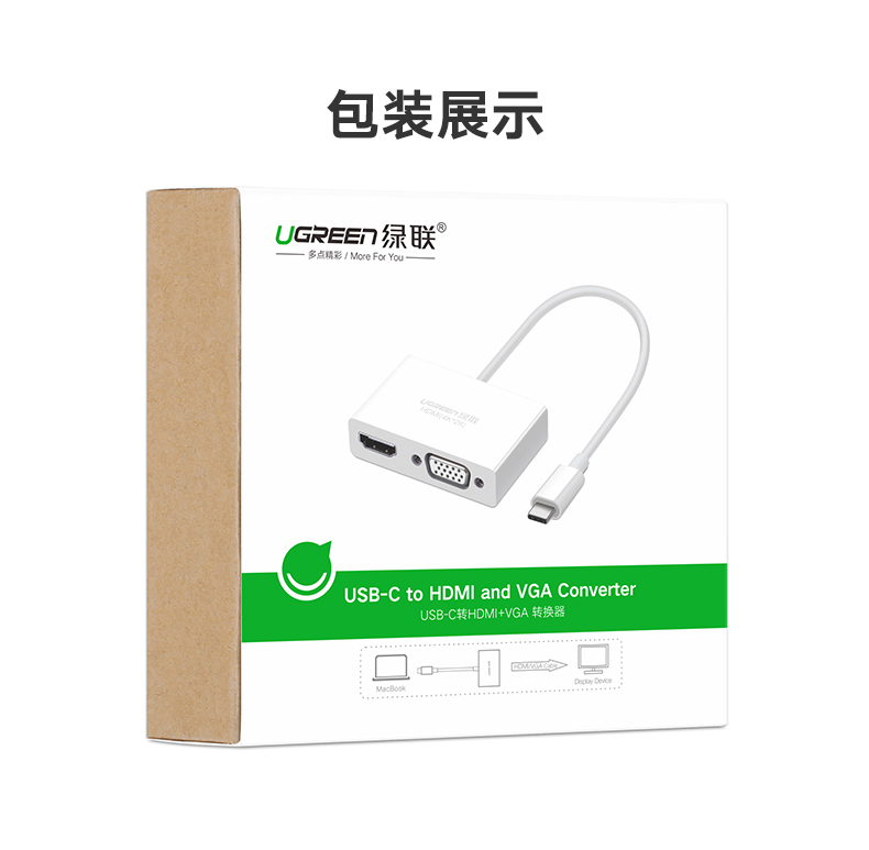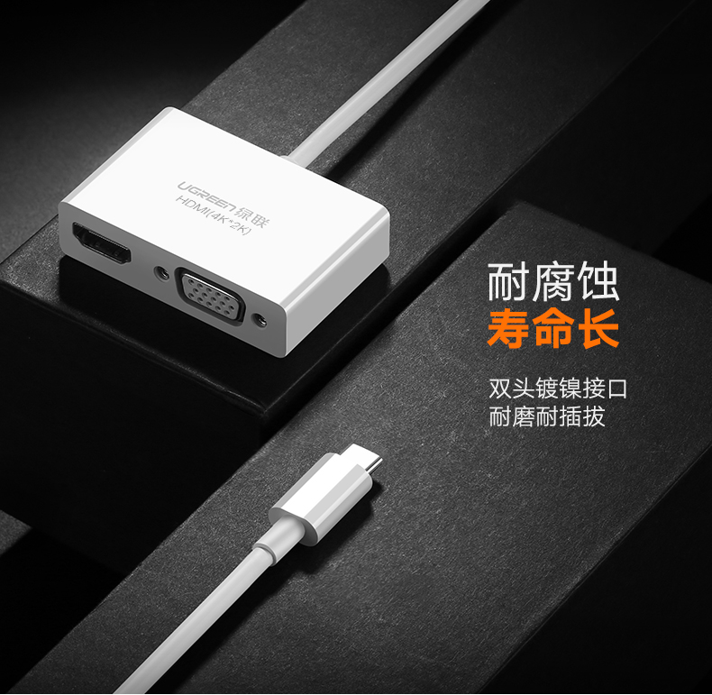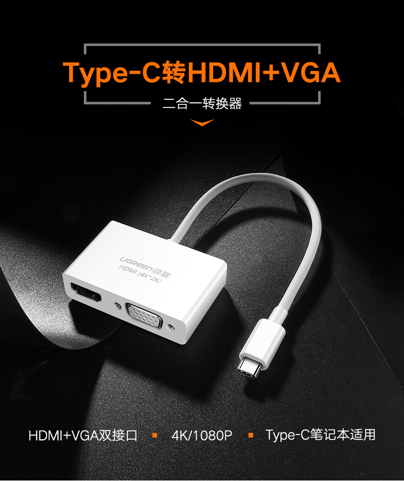 • 商品名称:绿联(UGREEN) 50251 Type-C扩展坞 USB-C转HDMI/VGA转换器 转接头 (黑色)