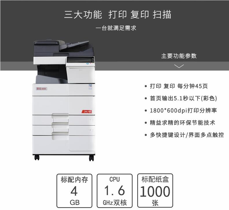 • 商品名称:震旦(AURORA) ADC555 A3彩色多功能数码复合机 扫描打印机多功能智能一体机 标配双面器/双面输稿器
