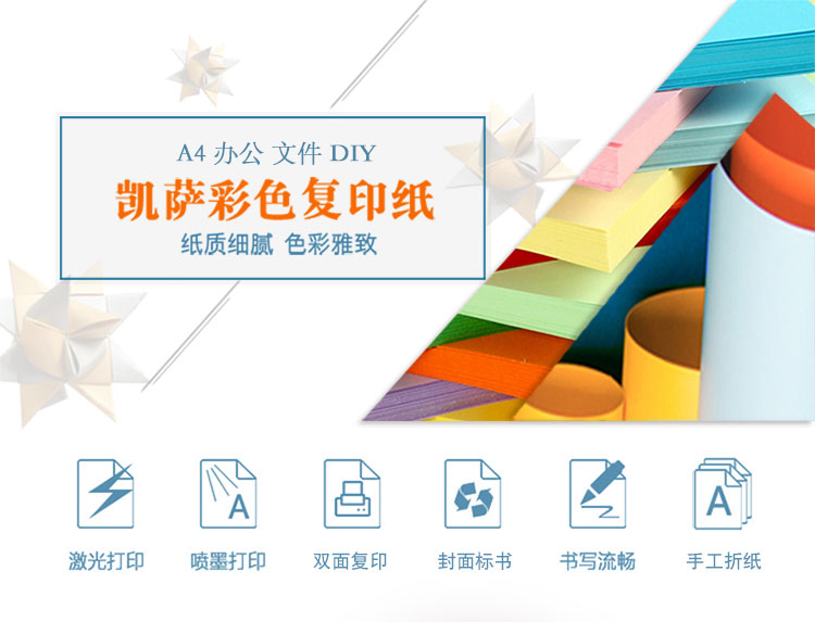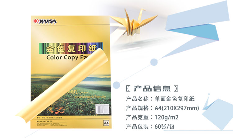 • 商品名称:凯萨(KAISA)A4单面金色彩色复印纸 120g 60张/包