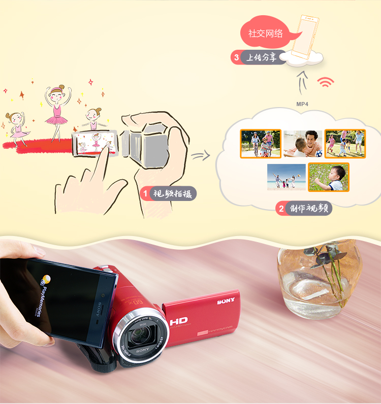 索尼(SONY)HDR-CX680 高清数码摄像机 5轴防抖 30倍光学变焦(白色)