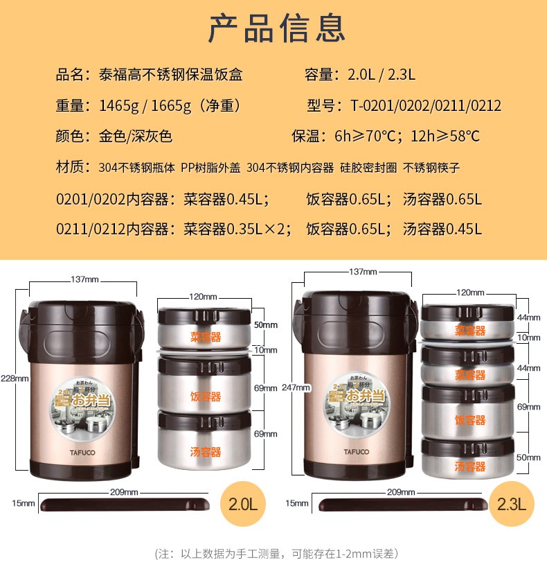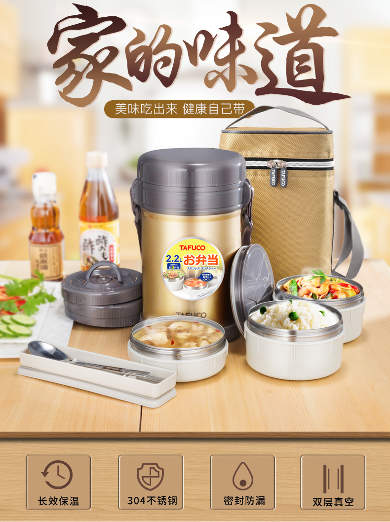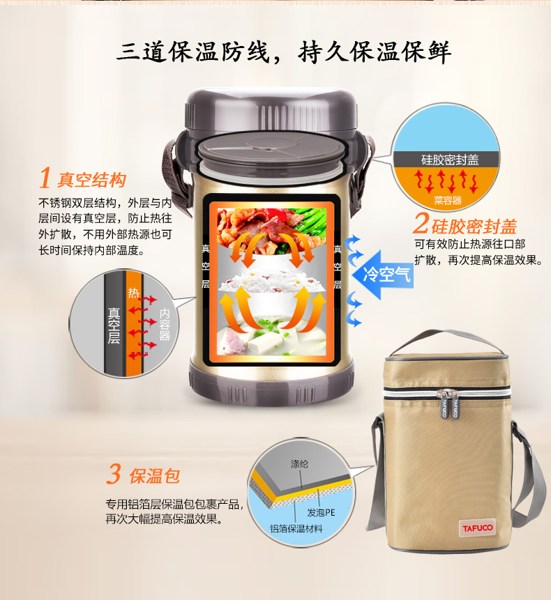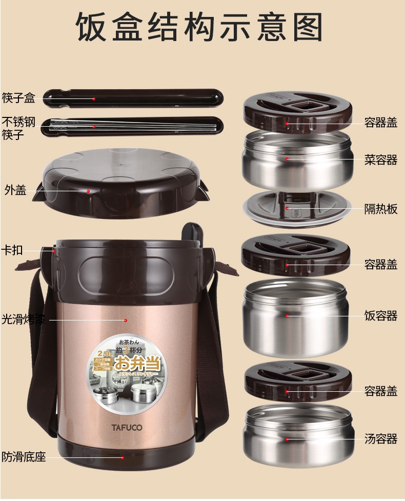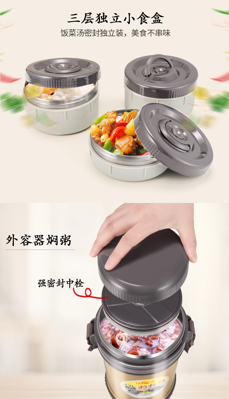 • 商品名称:泰福高(TAFUCO) T2531 保温饭盒 新款304不锈钢焖烧保温桶三层提锅大容量学生便当饭盒(糖果粉1.7L 三层可焖烧+防烫手)