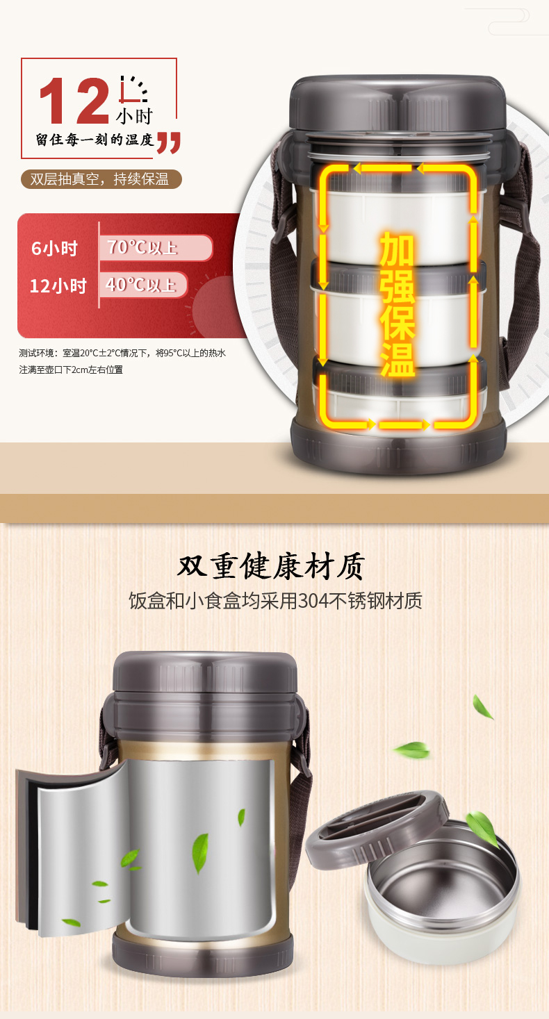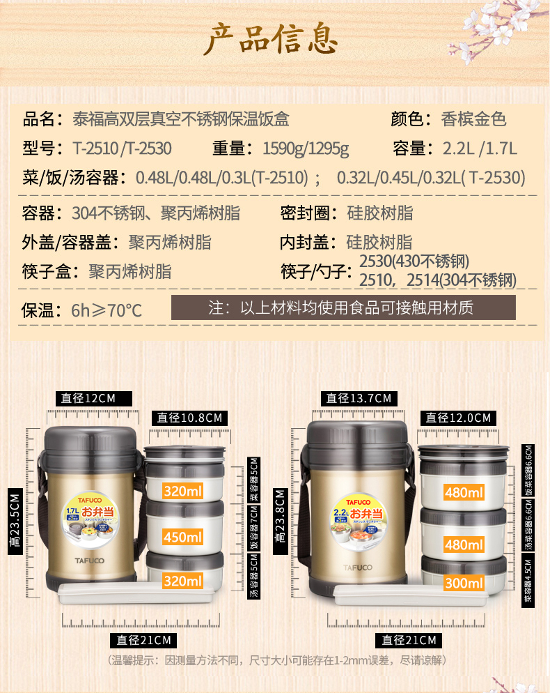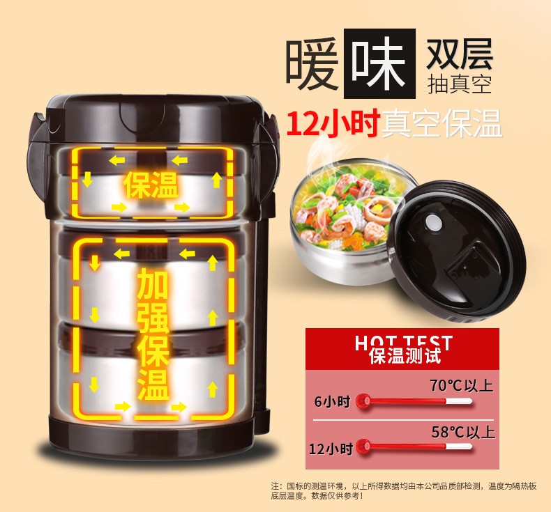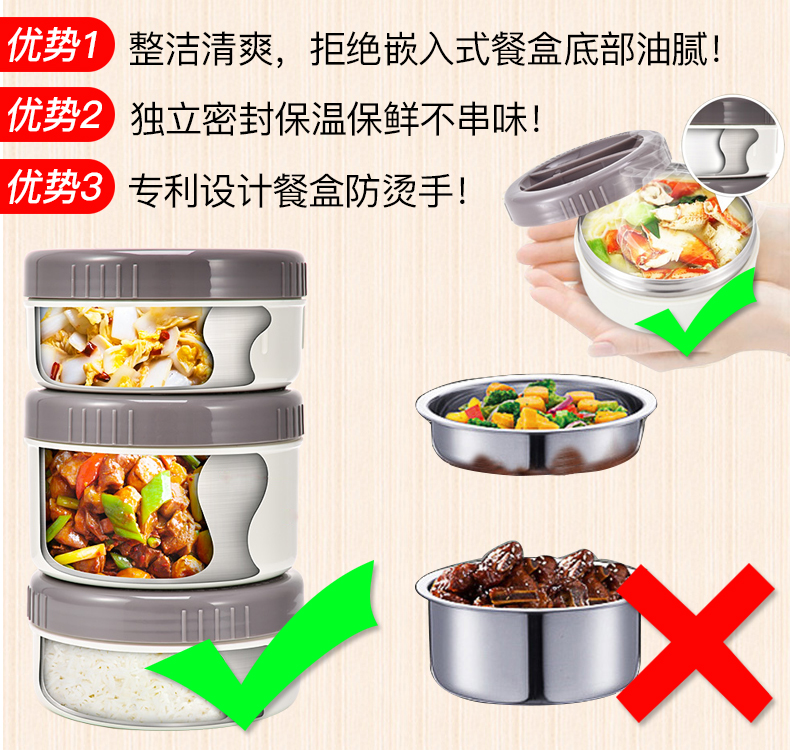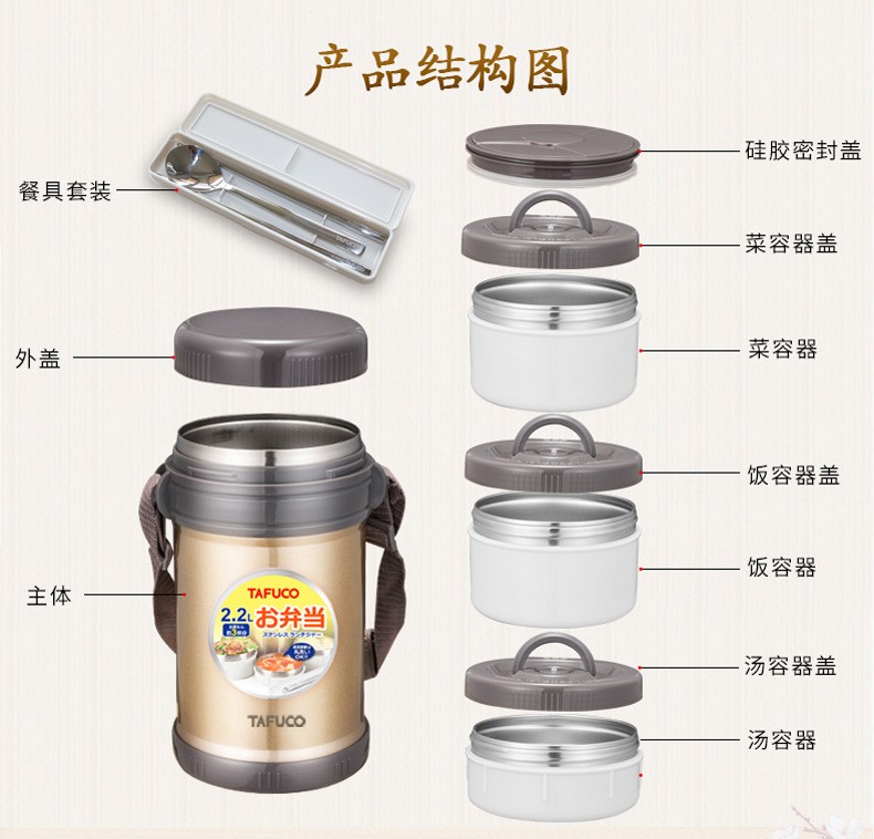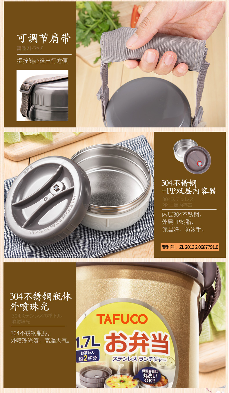 • 商品名称:泰福高(TAFUCO) T2531 保温饭盒 新款304不锈钢焖烧保温桶三层提锅大容量学生便当饭盒(糖果粉1.7L 三层可焖烧+防烫手)