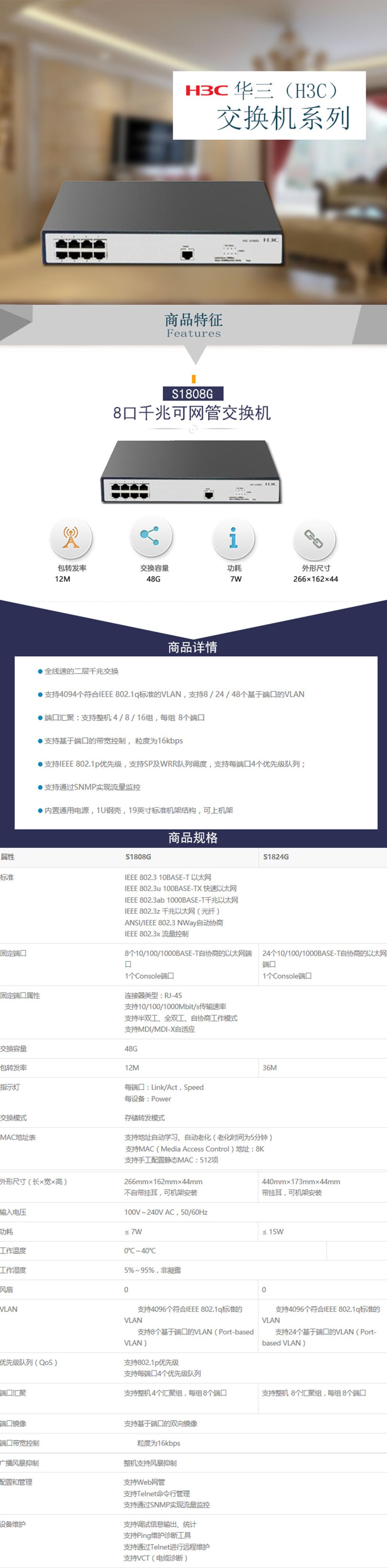 • 商品名称:华三(H3C) SMB-S1808G 8口全千兆二层以太网交换机