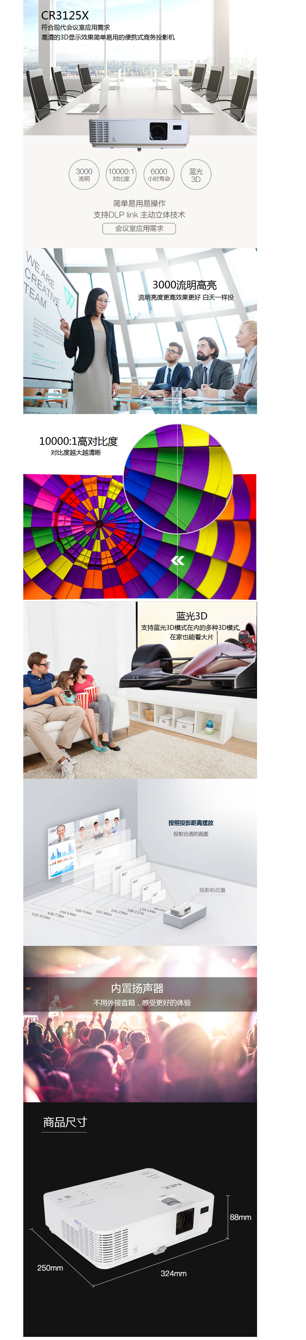 • 商品名称:NEC NP-CR3125X 投影仪 办公投影机 标清 3000流明 HDMI