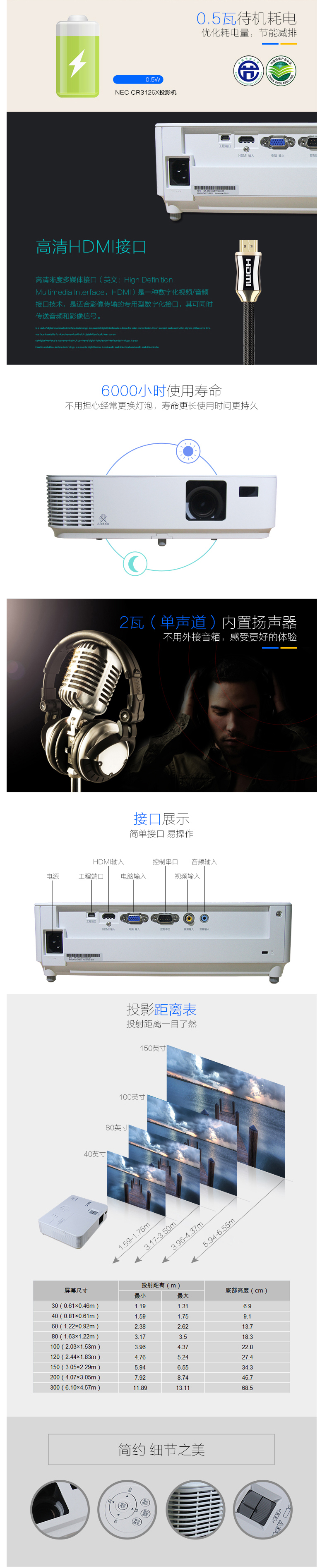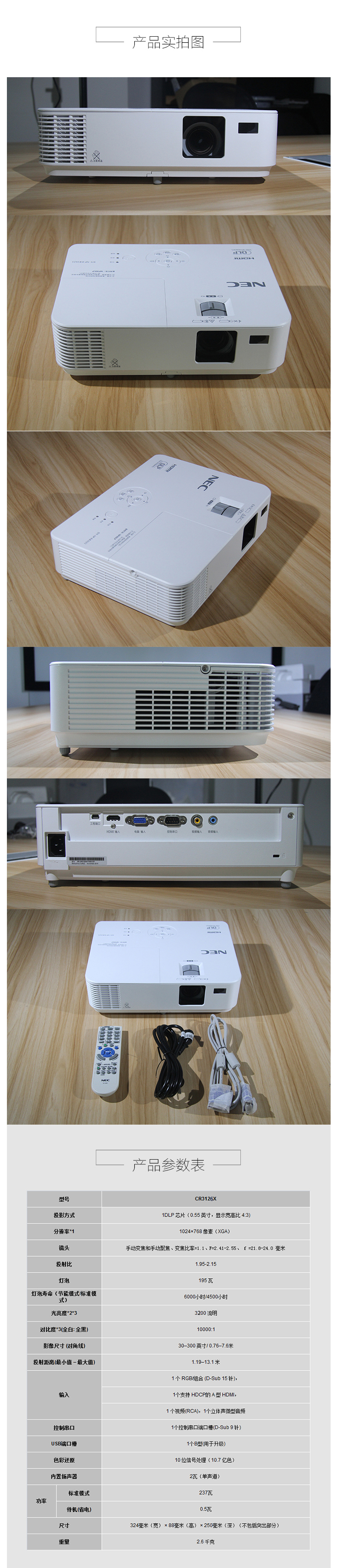 • 商品名称:NEC NP-CR3126X 投影仪(CR3125X升级款) 办公投影机 标清 3000流明 HDMI