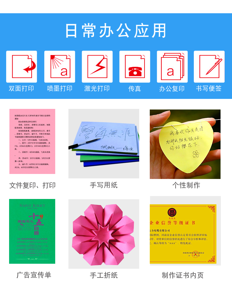 • 商品名称:安兴 A4彩色打印纸复印纸 浅绿色70g 500张(A4橙色-500张)