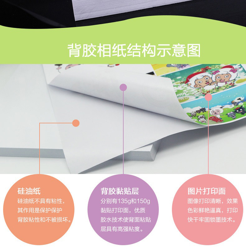 • 商品名称:白果树 高光背胶相纸 A3 带胶相纸可撕可粘 照片纸粘贴相纸 50张/包 (A3 135g)