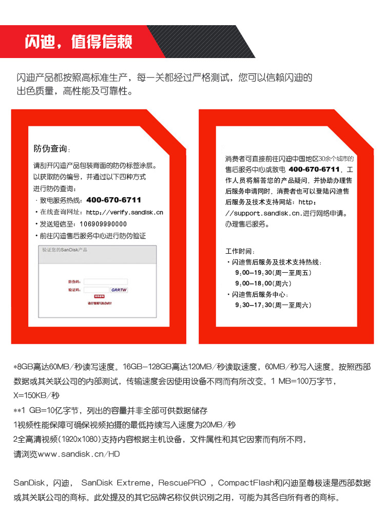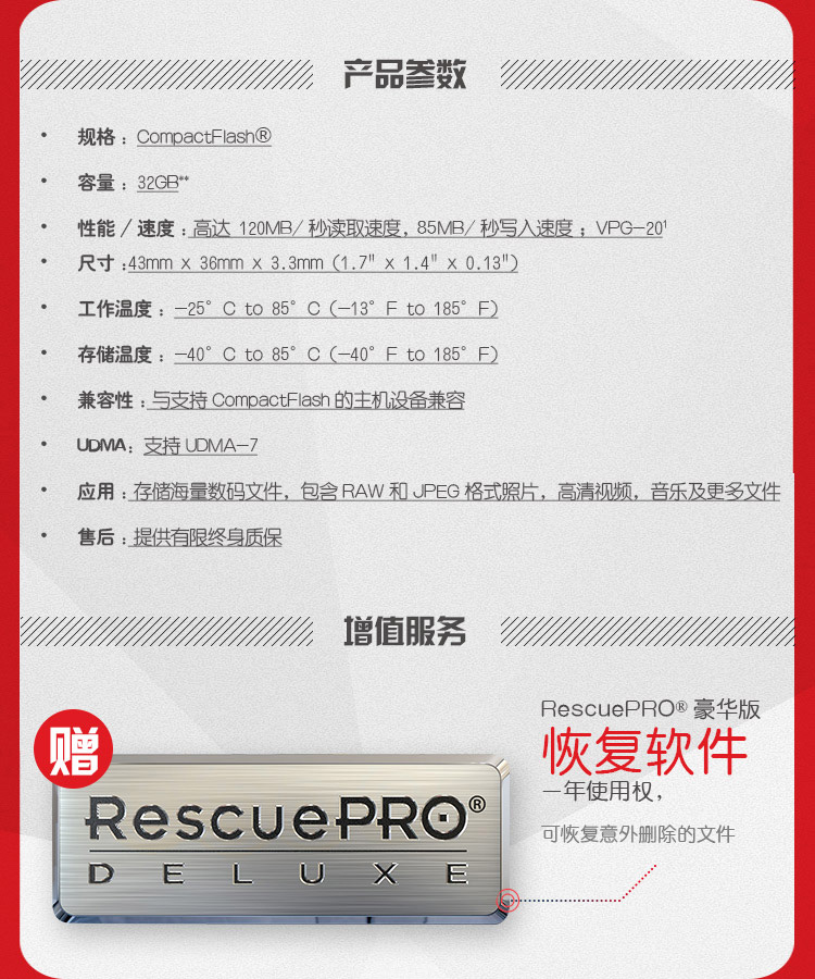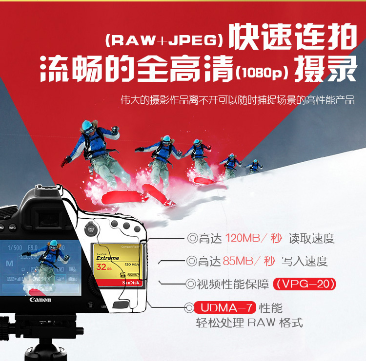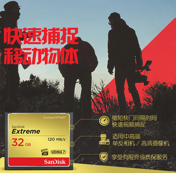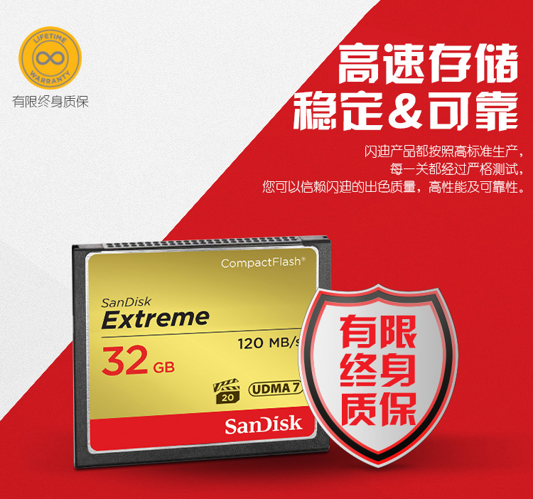 • 商品名称:闪迪(SanDisk)CF卡至尊极速 32GB 读速120MB/s 写速85MB/s CompactFlash存储卡 UDMA7