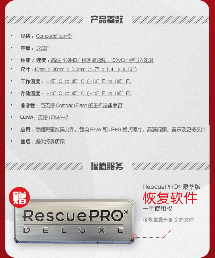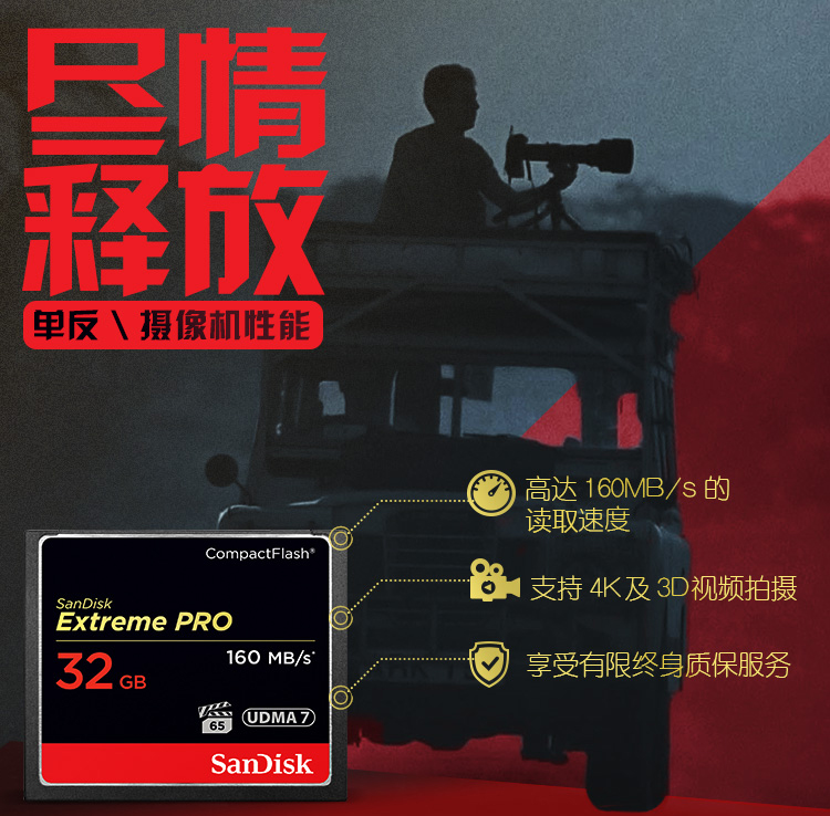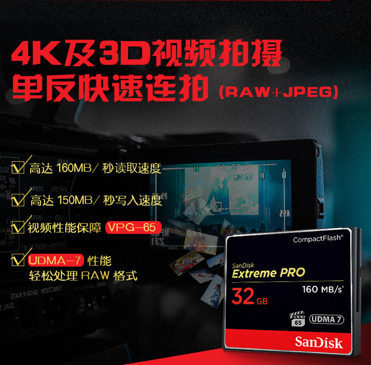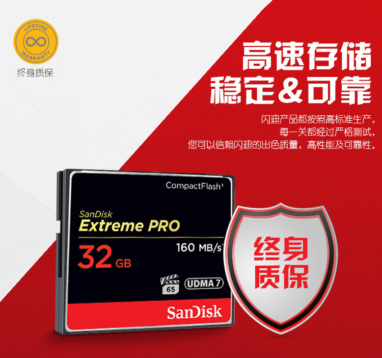 • 商品名称:闪迪(SanDisk)CF卡至尊超极速 32GB 读速160MB/s 写速150MB/s CompactFlash存储卡 UDMA7