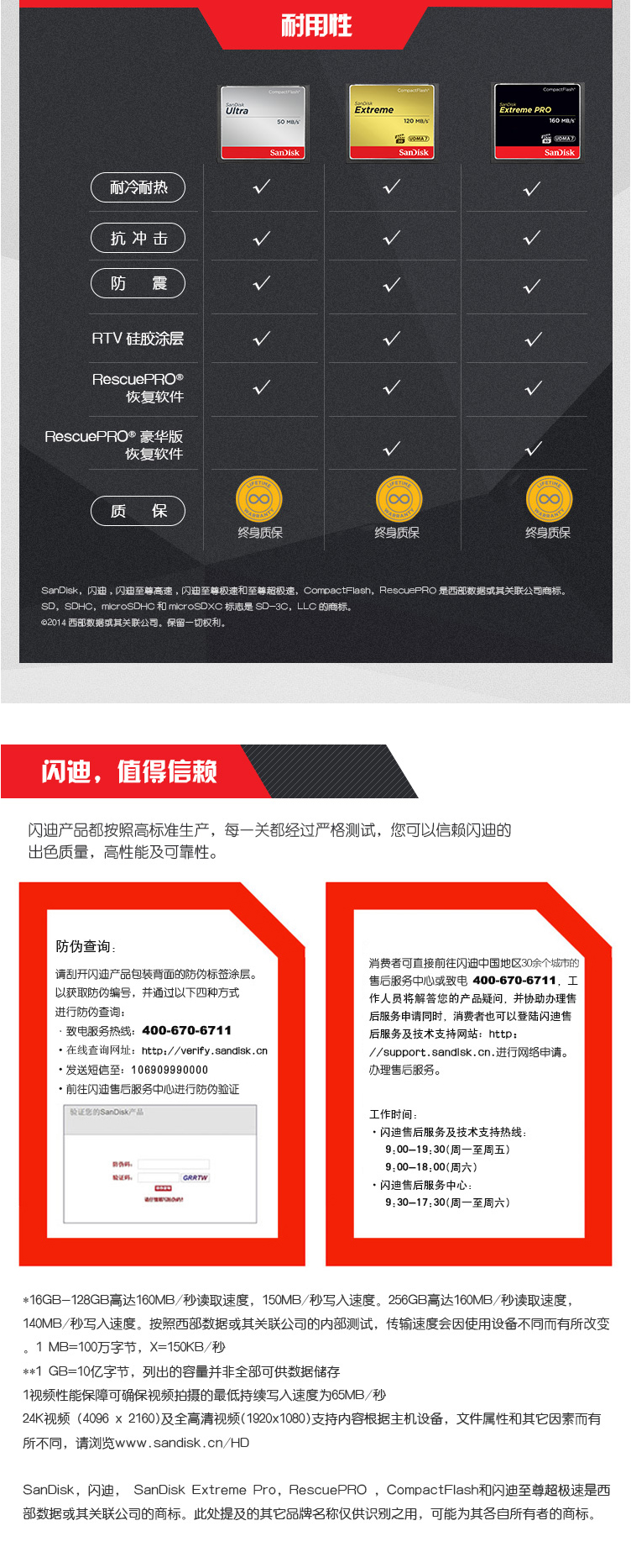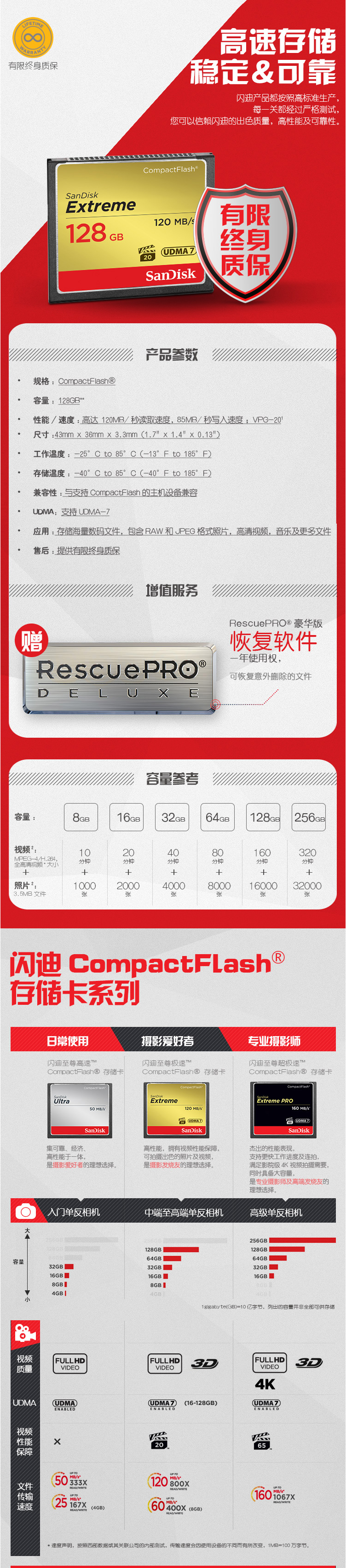 • 商品名称:闪迪(SanDisk) z46-128G CF卡 至尊极速版128G 存储卡 UDMA7 读速120MB/s 写速85MB/s (128G)