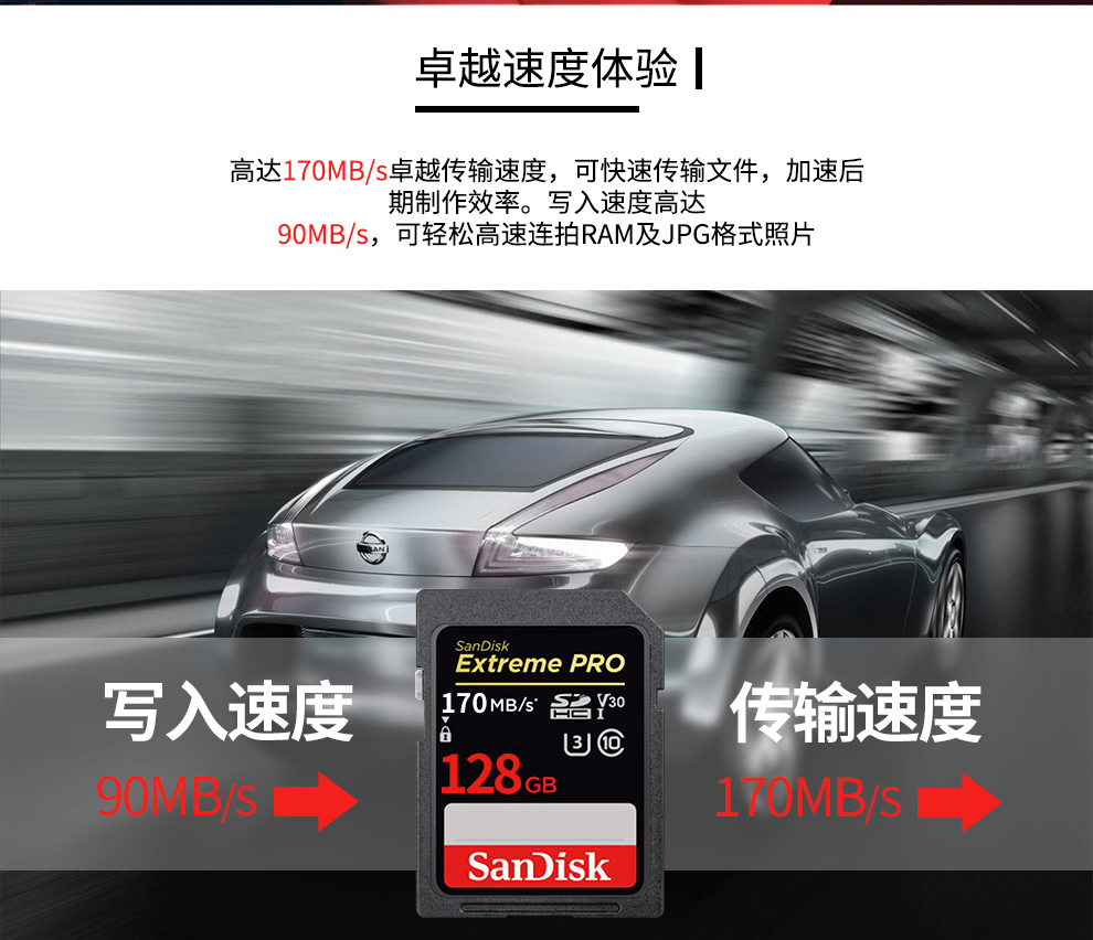• 商品名称:闪迪(SanDisk) SD卡至尊超极速版 128G 内存卡高速单反相机卡 摄影机存储卡 4K高清拍摄 ( SDXXY 170M/s 128G )