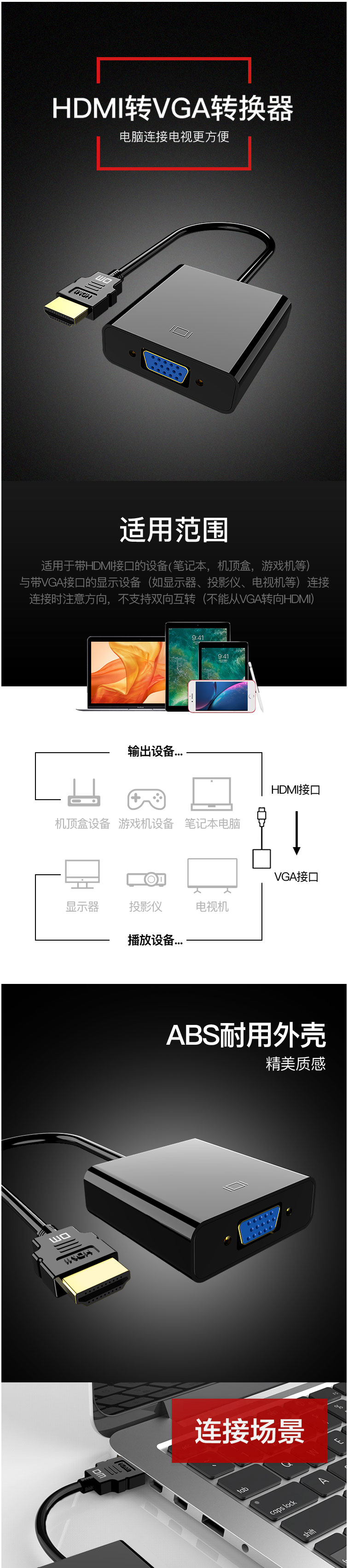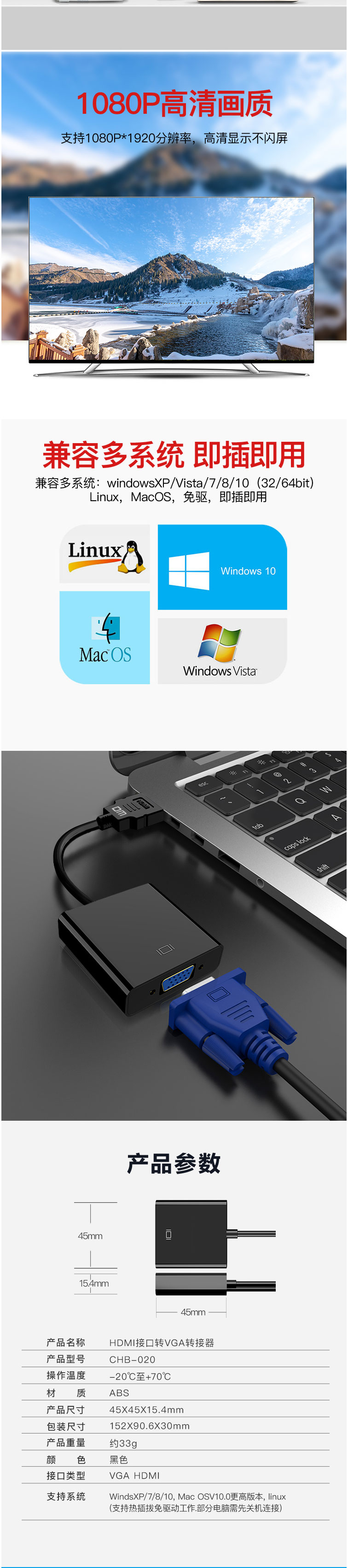 • 商品名称:大迈(DM) CHB020 CHB020 HDMI转VGA线转换器带音频口 高清视频转接头线适配器 电脑连接电视投影仪显示器