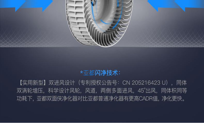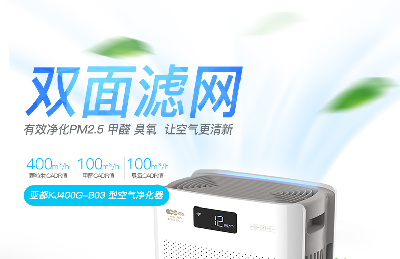 • 商品名称:亚都(YADU) KJ400G-B03 空气净化器 闪净技术快速净化双面滤网智能操控 有滤网 综合式 额定功率55W