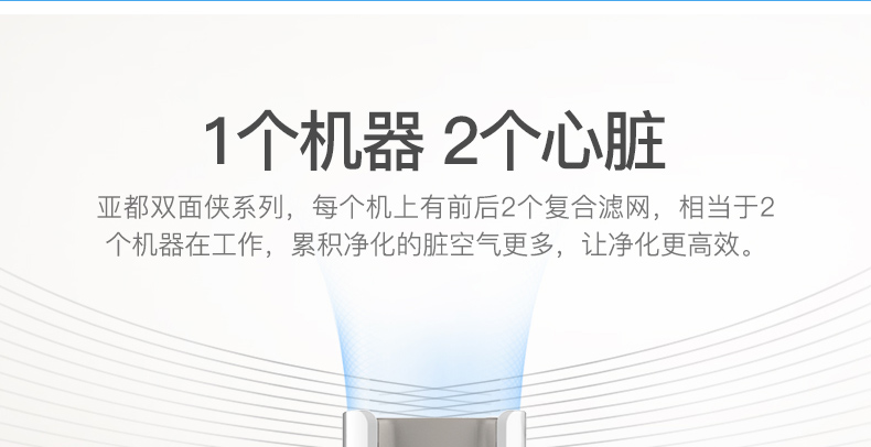亚都(YADU) KJ400G-B03 空气净化器 闪净技术快速净化双面滤网智能操控 有滤网 综合式 额定功率55W