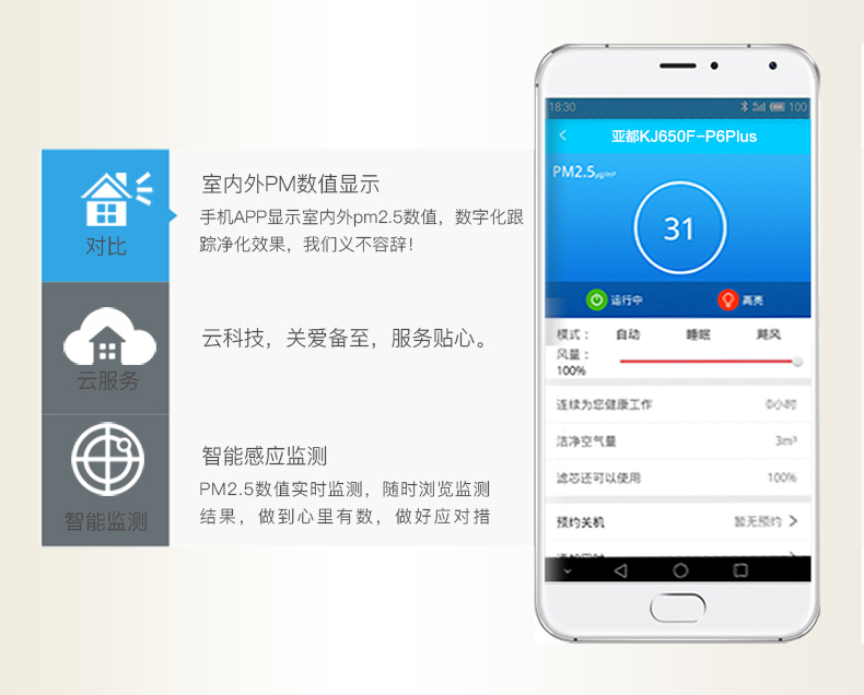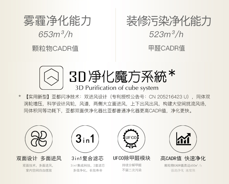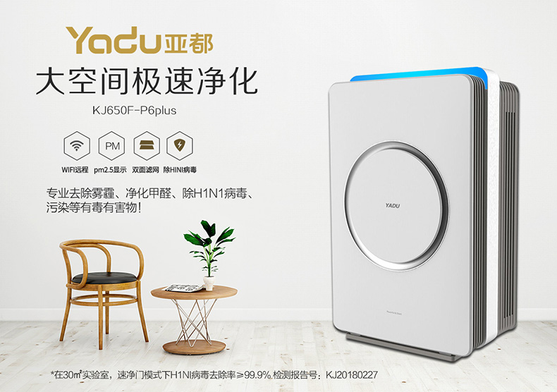 • 商品名称:亚都(YADU) KJ650F-P6PLUS 空气净化器 双面净化 除甲醛 雾霾 PM2.5 烟尘 有滤网 综合式 额定功率125W