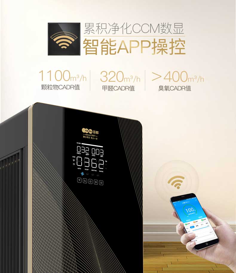 • 商品名称:亚都(YADU) KJ1100G-P11DD 空气净化器 智能家用商用净化器 除甲醛除臭氧 有滤网 综合式 额定功率150W黑色