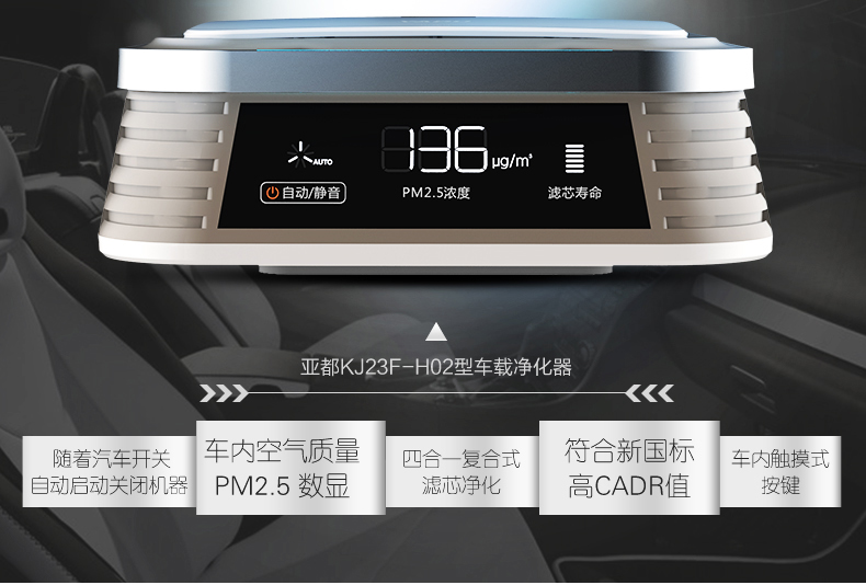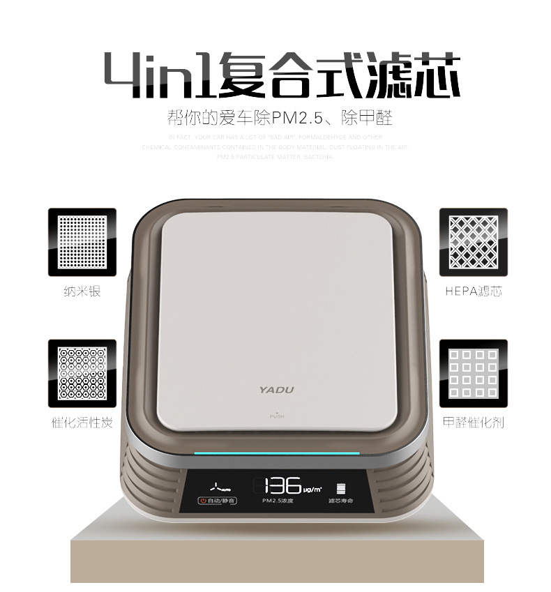 • 商品名称:亚都(YADU) KJ23F-H02 车载空气净化器 除甲醛异味pm2.5静音除尘 有滤网 综合式 (KJ23F-H02 灰色 额定功率5W)