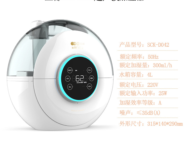 • 商品名称:亚都(YADU) SCK-D042 加湿器 家用静音大容量恒湿卧室办公室婴房创意