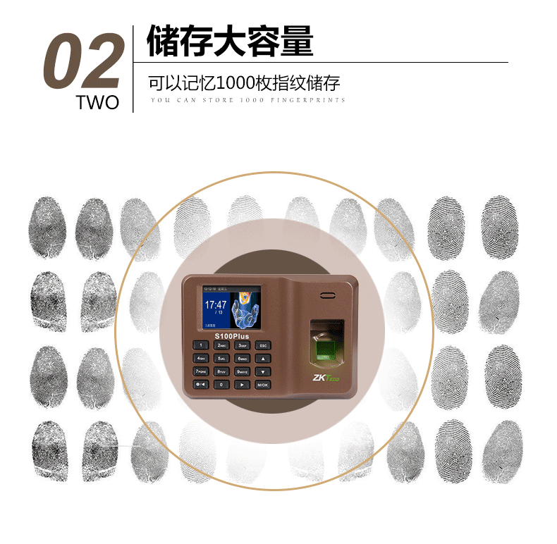 中控智慧(ZKTeco) S100plus 考勤机 指纹打卡机上下班打卡签到指纹考勤机