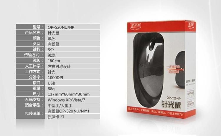 • 商品名称:双飞燕(A4TECH) OP-520NU 有线鼠标 办公鼠标 USB鼠标 笔记本鼠标 黑色