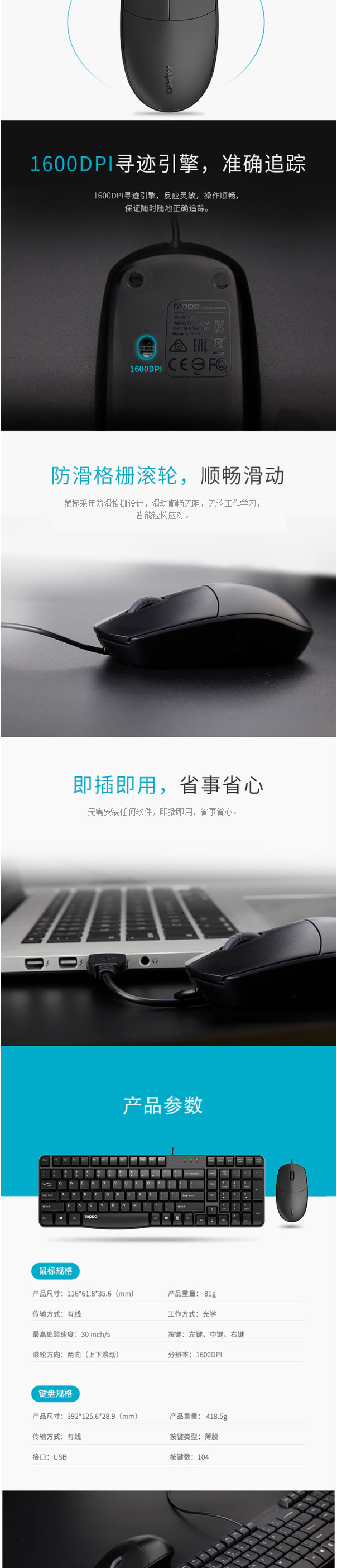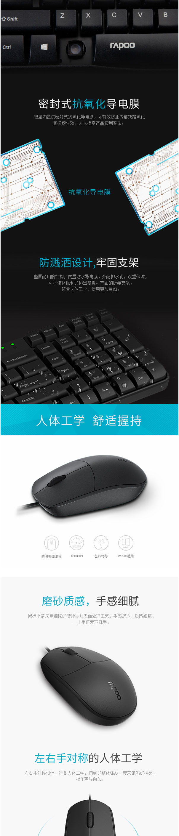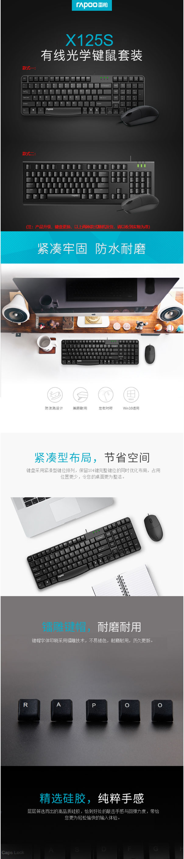 • 商品名称:雷柏(Rapoo) X125S 键鼠套装 有线鼠标键盘套装 有线键鼠套装 键盘+鼠标 USB口 (黑色)