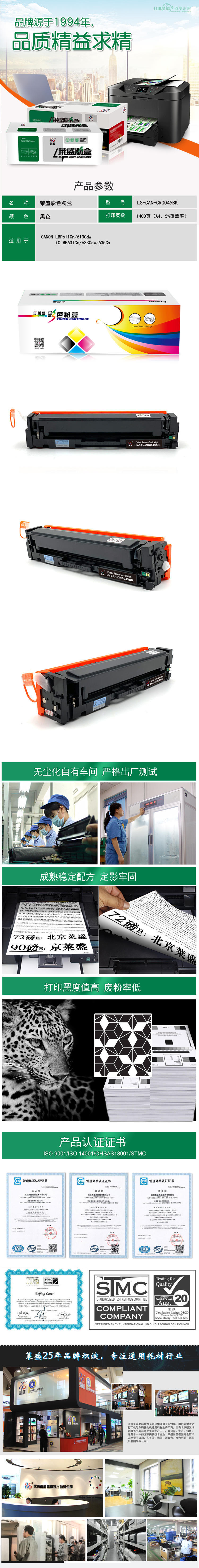 莱盛(laser) CRG045 BK 硒鼓(适用于佳能MF635Cx 633Cdw MF631Cn LBP611CN MF613) (LS-CAN-CRG045BK 黑色) (LS-CAN-CRG045BK 黑色)
