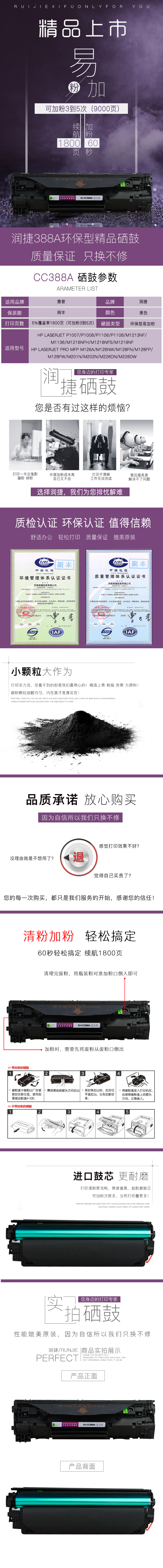 • 商品名称:润捷 RJ-388A 硒鼓 易加粉硒鼓 适用于惠普HP P1007/P1008/M1136/M1213nf/1216