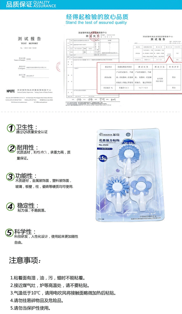 • 商品名称:茶花(CHAHUA) 2920 粘钩 花类强力粘钩 3支装