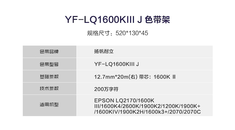 • 商品名称:扬帆耐立(YFHC)YF-LQ1600KIII J 色带架 适用于爱普生LQ1200K/2170/2170C/2070/2070C/2080黑色BK