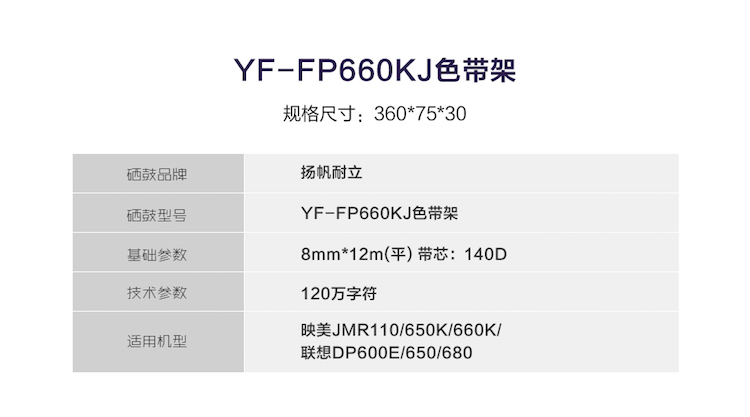 • 商品名称:扬帆耐立(YFHC)YF-FP660K J 色带架 适用于映美JMR110/650K/660K/联想DP600E/650/680