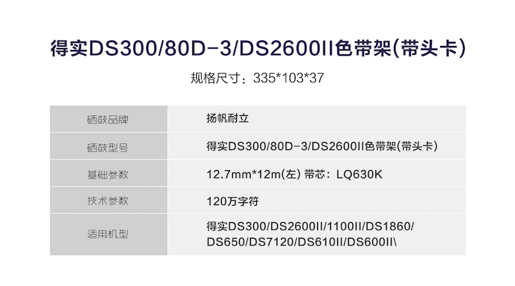 • 商品名称:扬帆耐立(YFHC) DS300/80D-3/DS2600II色带架(带头卡)适用于得实DS300/DS260011/1100II/DS1860/DS650/DS7120/DS610II/DS600II