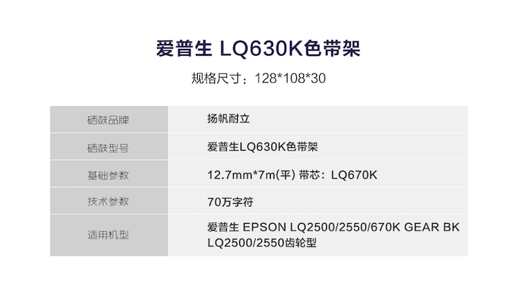 • 商品名称:扬帆耐立(YFHC)LQ630K 色带架 适用于爱普生EPSON LQ630K /LQ730/LQ80KF
