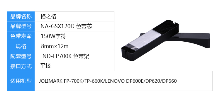 • 商品名称:格之格(G&G) FP700K 色带芯NA-GSX120D 适用映美FP-700K FP-660K联想DP600E DP620 DP660打印机色带芯