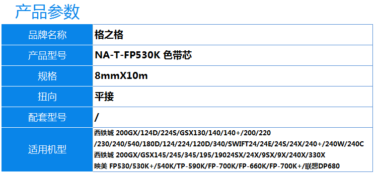 • 商品名称:格之格(G&G) NA-T-FP530K 色带芯 适用映美FP530 530K+ 530KII 580 590 KY-540K TP-590K 530K打印机色带芯