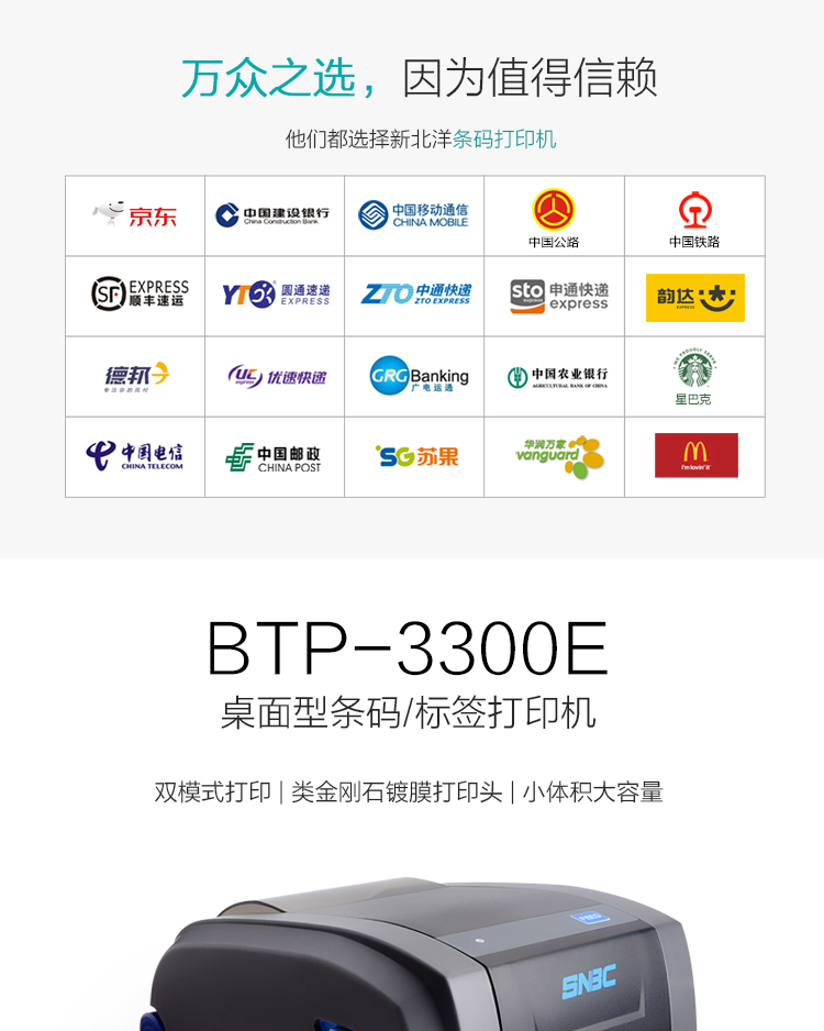• 商品名称:新北洋(SNBC) BTP-3300E 300dpi高清条码标签打印机