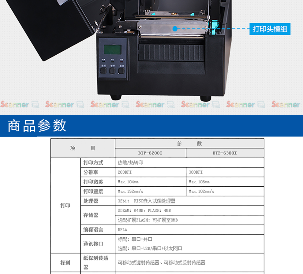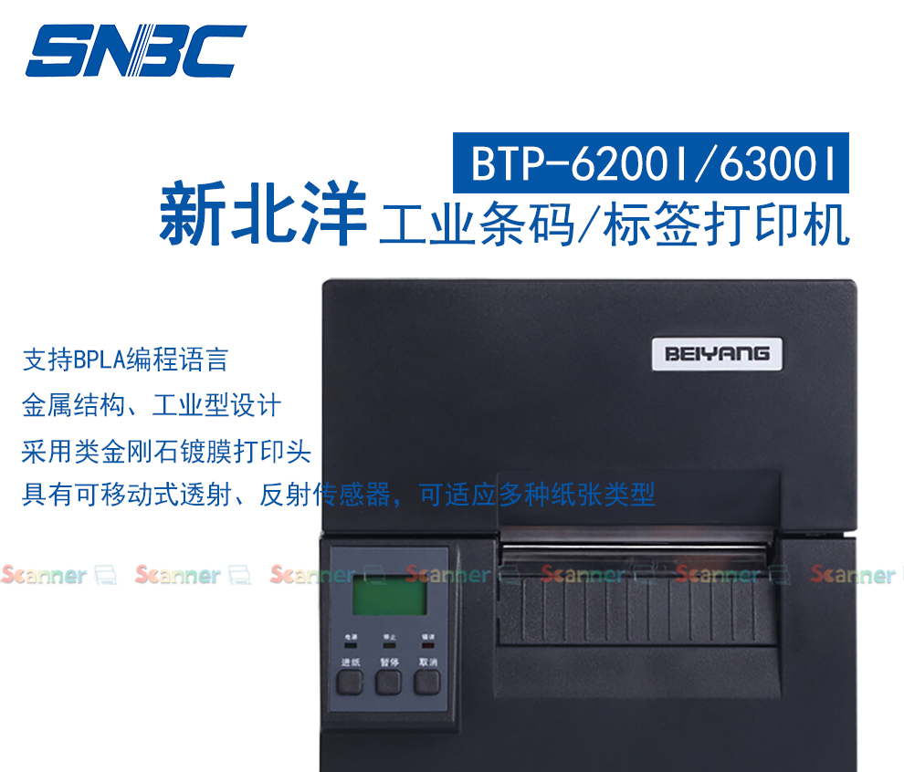 • 商品名称:新北洋(SNBC) BTP-6300I 工业型条码机 景区门票标签条码打印机300dpi USB