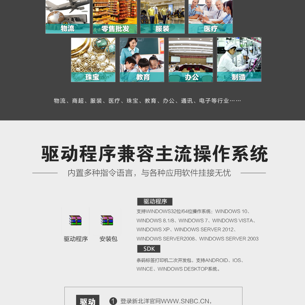• 商品名称:新北洋(SNBC) BTP-7400 高强度工业型条码标签打印机200点不干胶生产制造 (203DPI)