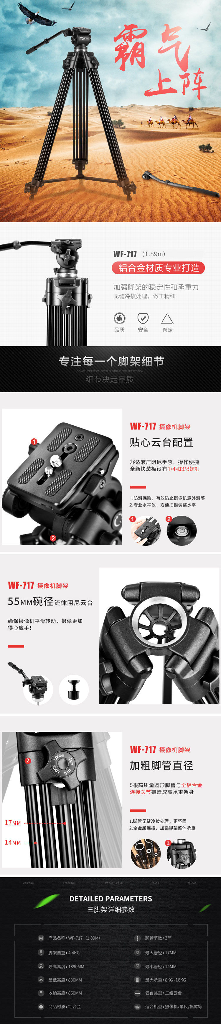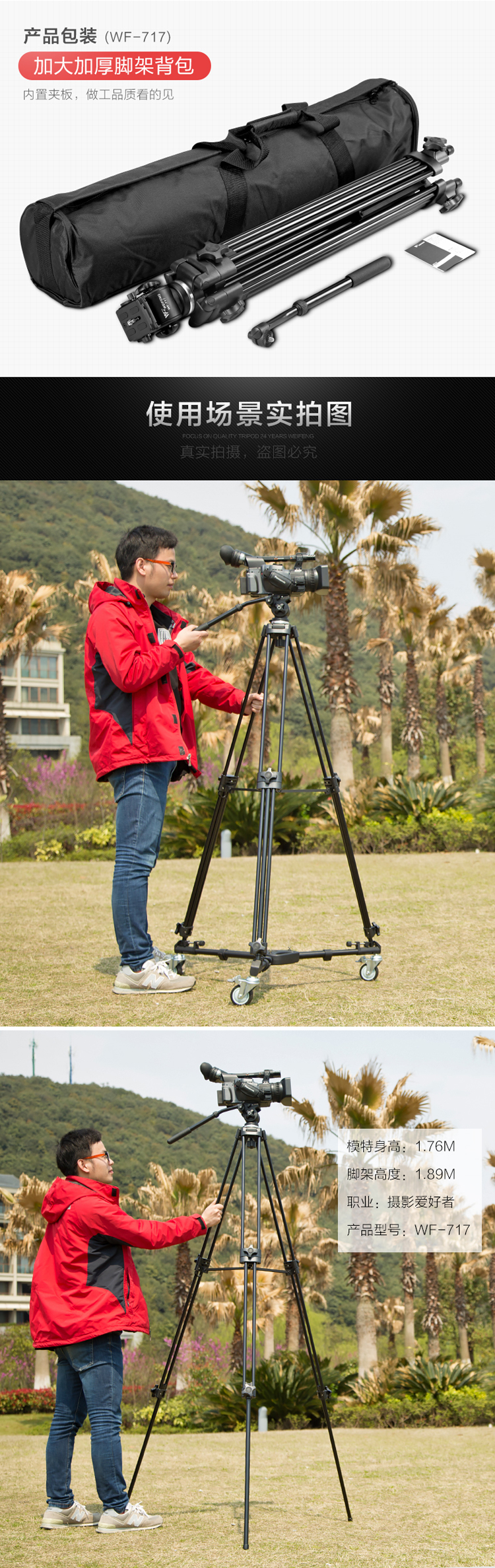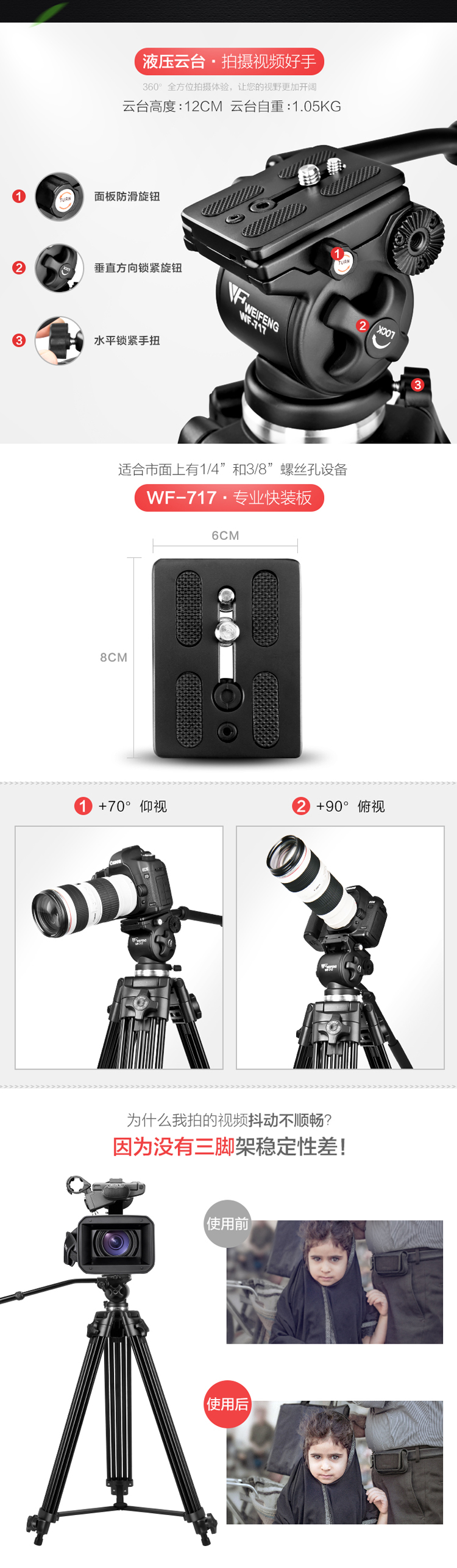 • 商品名称:伟峰(WEIFENG) WF-717 三角架 铝合金三脚架1.8米 专业摄像机脚架 液压阻尼云台三角架