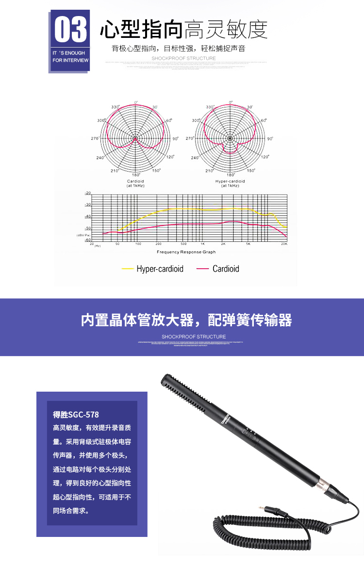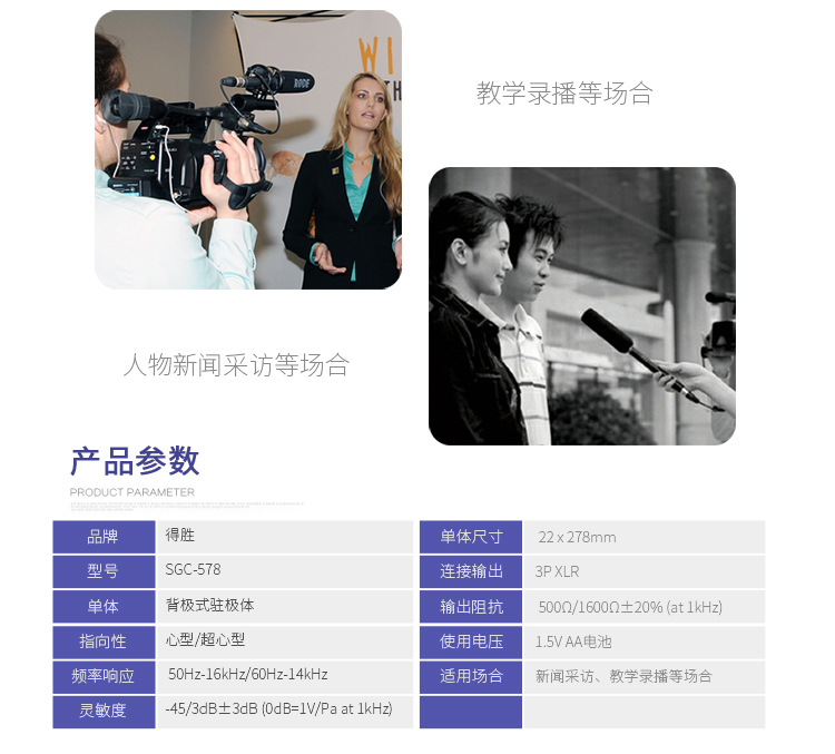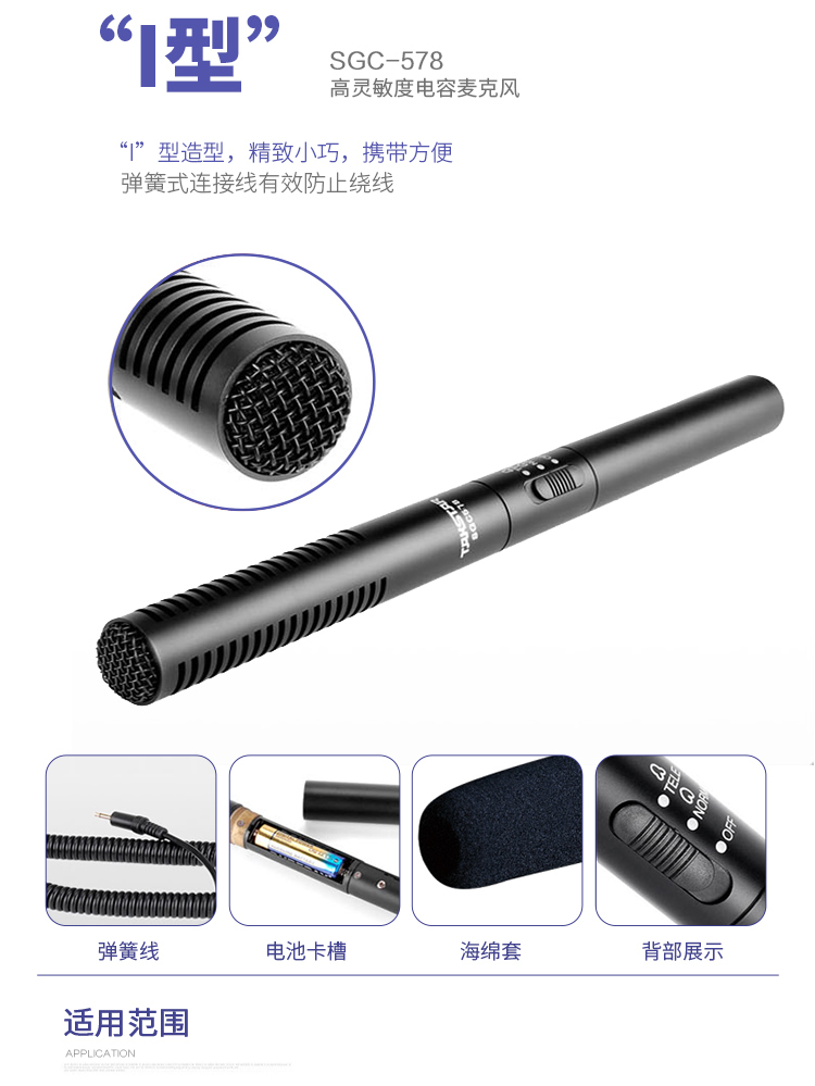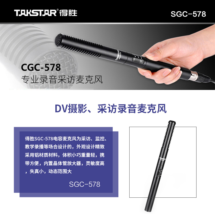 • 商品名称:得胜 SGC-578 手持麦克风 I型外接话筒 采访麦克风录音话筒 黑色